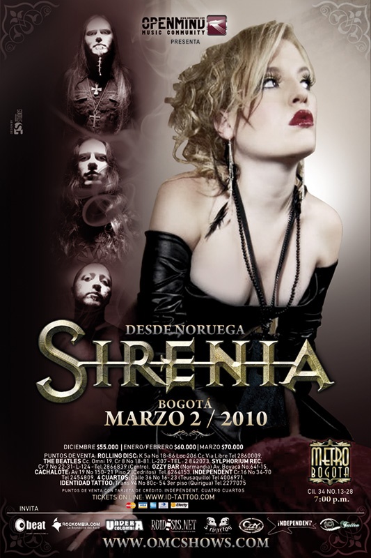 Por primera vez en Colombia desde Noruega: Sirenia .La banda de Morten Veland visitara nuestro país el 2 y 3 de Marzo de 2010 promocionando su último álbum «The 13th Floor«.El concierto en Bogotá será el 02 de marzo en el Teatro Lumiere
