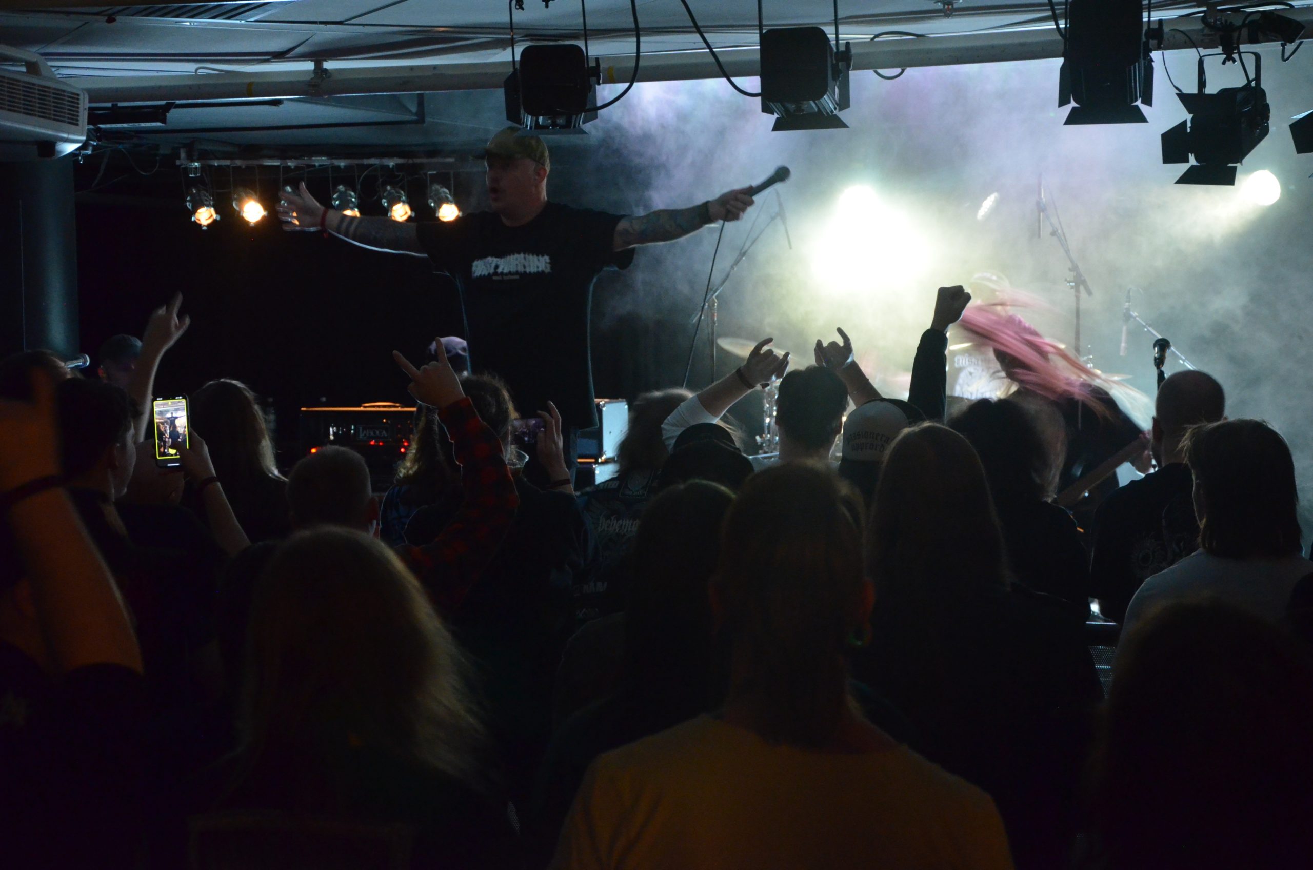 Övervåld, de Sundsvall, tuvo su debut hace un año y ya está montándose en la tarima de este evento. Sus parajes sonoros son bastante primitivos y agresivos, al mejor estilo del sonido brutal del death más clásico. Los ataques sónicos de este grupo se canalizan a través de la aplanadora voz de Rebecca Madelene Holm, que no dejó a nadie indiferente. La tarima mediana disfrutó de la presencia de las alineaciones de Loch Vostok, Mörk Gryning y Bewitcher, de las cuales sólo presenciamos un par de canciones, gracias a que la ubicación en el sótano limitaba el aforo de manera relativamente incómoda. Además, arrasó en asistencia Defleshed, cuyo espectáculo fue el que salvó el espacio.