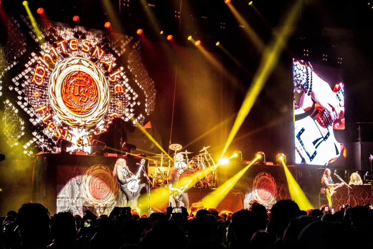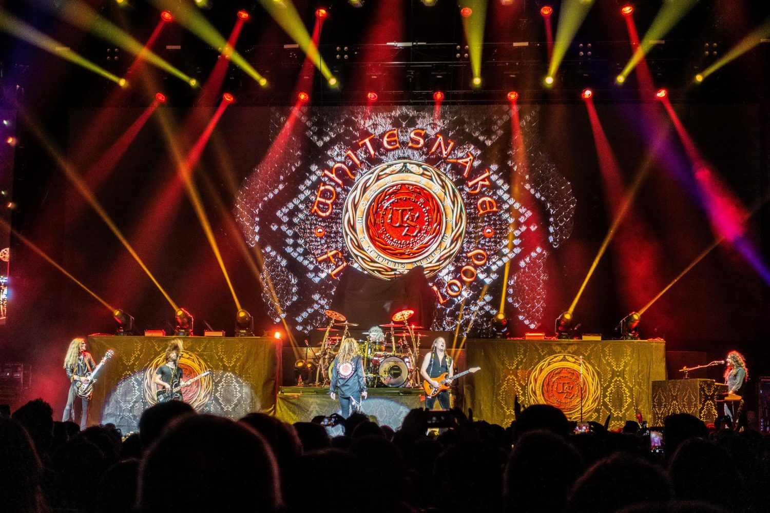 A las 08:00 de la noche puntualmente inicia el show de WHITESNAKE, en esta ocasión con David Coverdale estaba acompañado de maravillosos músicos: Joel Hoekstra y Reb Beach en las guitarras, Michael Devin en el bajo, Tommy Aldridge en la batería y Michele Luppi en los teclados. La primera canción, un clásico de 1987 “Bad Boys”, continuando con esta línea de los álbumes de los 80 siguen: “Slide It In”, “Love Ain’t No Stranger”,  “Hey You (You Make Me Rock)” y “Slow an’ Easy”. Seguiría “Trouble Is Your Middle Name” abrió el paso para el duelo de guitarra entre Joel Hoekstra y Reb Beach. “Shut Up and Kiss Me”,  dio lugar a un solo de batería fuera de lo común por parte de Tommy Aldridge, quien usó el golpe de sus manos para crear una magistral presentación que nos dejó boquiabiertos. Vendrían  los infaltables temas  “Is This Love”, “Give Me All Your Love” y “Here I Go Again”, canciones que siguen vigentes y que evocan memorias. “Still of the Night” fue una interpretación inolvidable, David Coverdale desgarró su voz hacia la inmensidad con el acompañamiento de su banda; y para cerrar con broche de oro no podía faltar un cover de Deep Purple, “Burn” con sus teclados psicodélicos. Así bajo una  lluvia de aplausos cierra WHITESNAKE la primera parte de este memorable concierto.